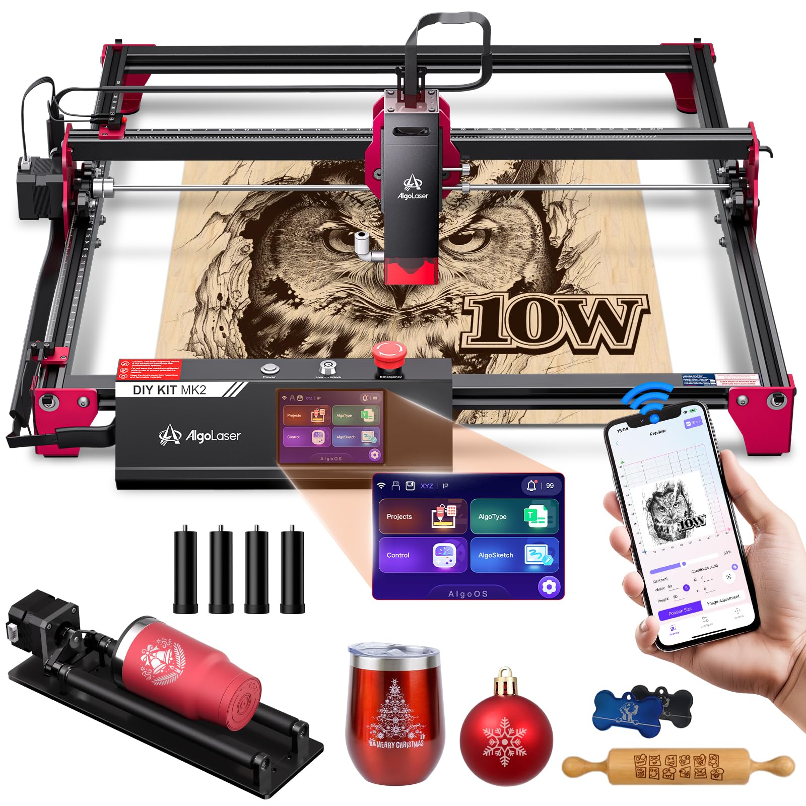 AlgoLaser Laser Engraver, 96W Total Power, 10W (10,000mW) Laser Output Power, with Smart Touchscreen, can be Used Without a Computer (air Pump not Included)
