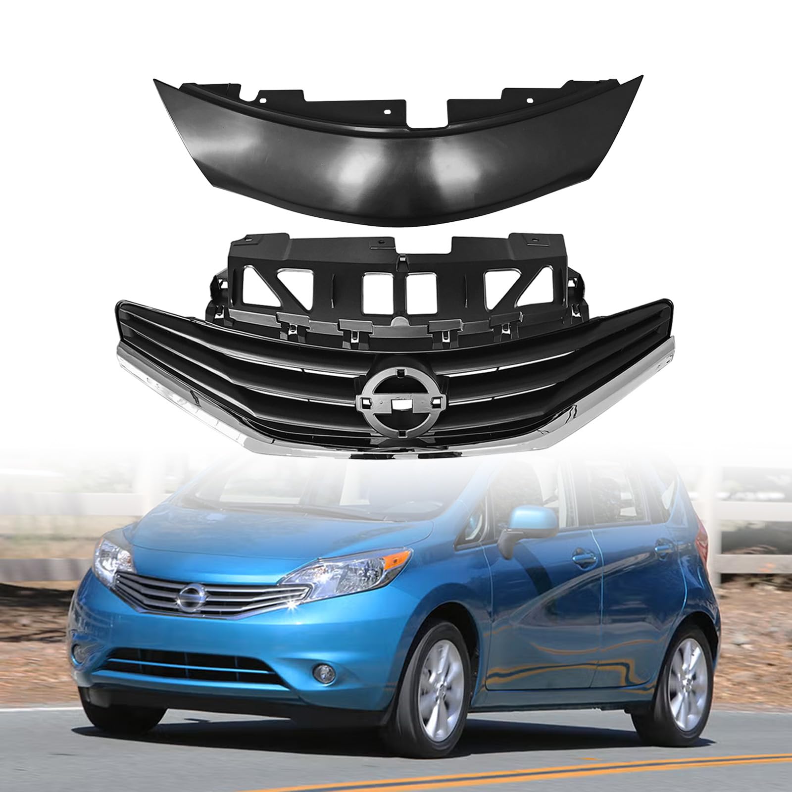 Front Upper Bumper Grille and Hood Molding Cover,Compatible with 2014-2017 Nissan Versa Note S SV SL S Plus,Replace OEM/Part NO.623203VY0H/NI1201100, 623103VY0A/NI1200257
