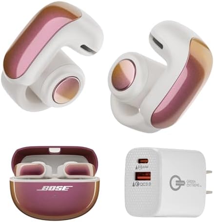 Bose Ultra Open Bluetooth Earbuds, True Wireless Earbuds with OpenAudio for Awareness, Clip On Design for Comfort, Immersive Audio, Up to 48 Hrs of Playtime + 20W Wall Charger (Sunset Iridescent)