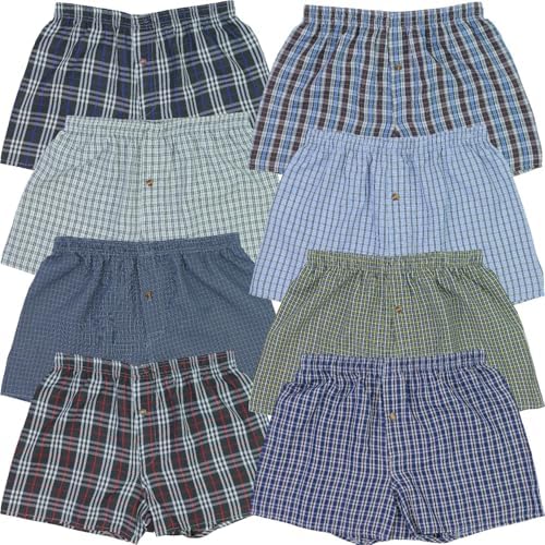 ToBeInStyle Men's 3 Pack Classic Multicolored Checkered Woven Boxer Shorts w/Button - 4XL