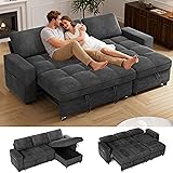 【Convertible Pull Out Sofa Bed】Transform your l-shape sectional sofa into a cozy bed effortlessly with one auxiliary hand strap. Not only can this sofa bed couch meet your needs of watching TV, reading books, and taking a nap, effortlessly adapting to accommodate overnight guests. 【Tool-Free Assembly】This sectional sleeper sofa bed is easy to assemble with clear instructions and no tools needed. The components snap together effortlessly, allowing you to enjoy your new furniture without the stress of complicated assembly. 【5-Position Reclining Adjustable Backrest】 With backrest angles of 100°, 120°, 140°, 160°, 180°, this sofa sleeper allows you to comfortably read a book, lounge for movie nights, or recline flat for restful naps. Our sleeper couch for living room are designed to adapt to fit your unique lifestyle. 【Chenille Material and Removable Cover】The comfy sofa is made of breathable chenille fabric, which is not easy to wrinkle or tear, ensuring a longer lifespan. All cushion covers are removable and washable. You could remove them for cleaning when they get dirty. 【USB Charging and Storage Space】Ample storage space under the convertible sofa chaise is perfect for storing blankets and pillows, keeping them clean and easily accessible.This pull-out sofa comes with built-in USB port and Type-C on one side for charging at any time, and storage pockets on both sides of the sofa bed for remotes, magazines, newspapers, and other items make storage easy and convenient. NOTE: Please check the size chart before purchasing to ensure our sofas meet your requirements!!!