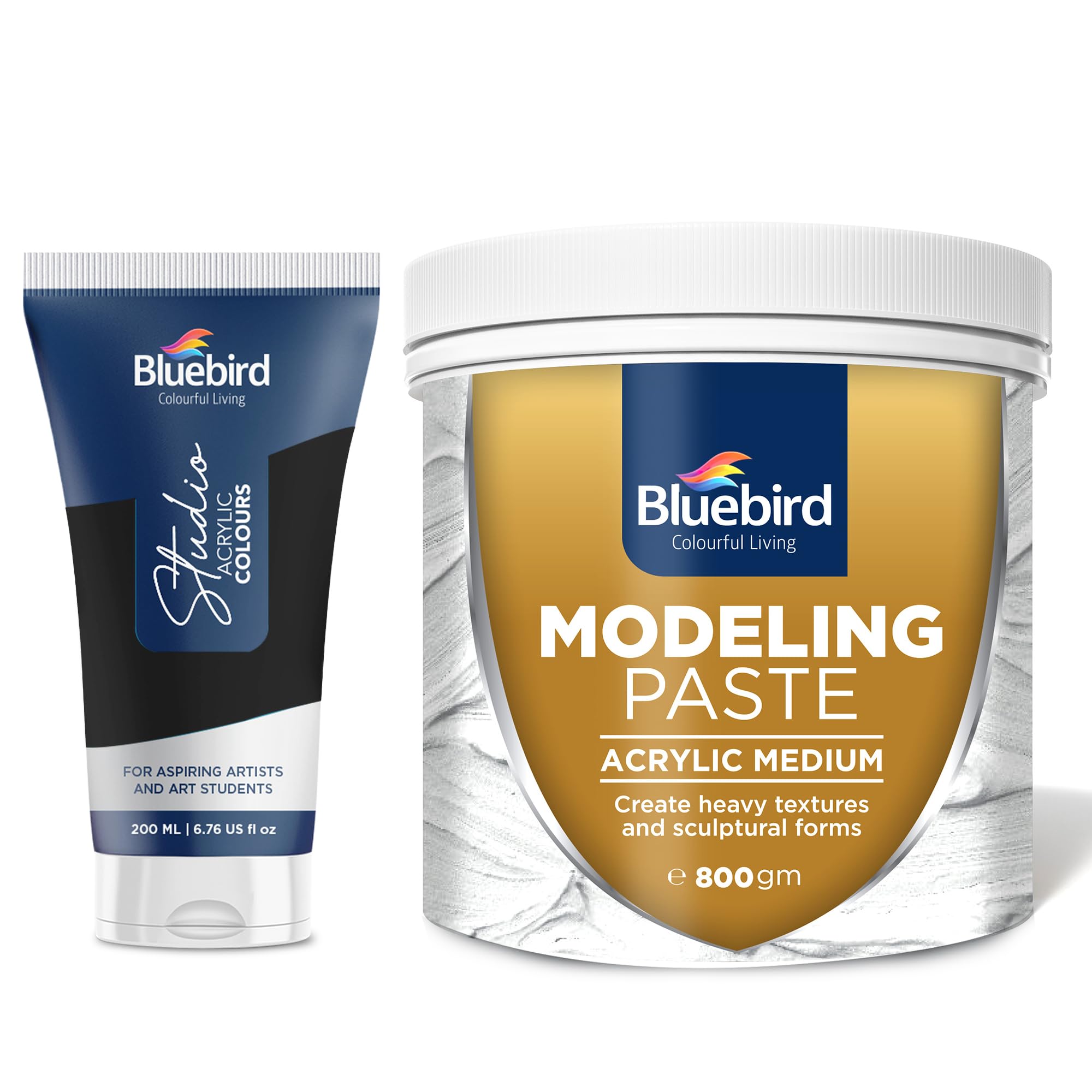 Bluebird Professional Thick Modeling Paste 571ML / 28.2Oz + Studio Acrylic Paint Tube - White 6.76 Fl Oz / 200ML
