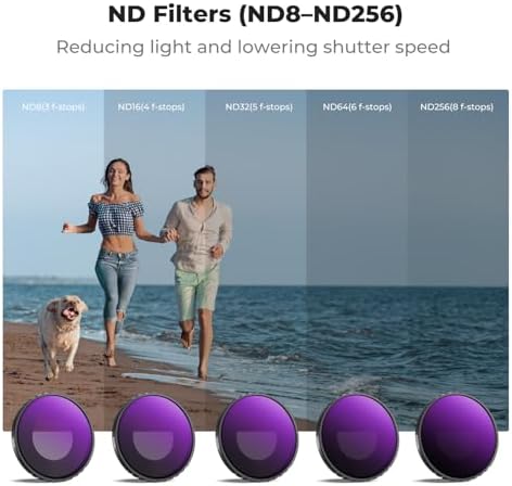 - [Total Control Over Light & Motion]: 5 ND Filters (ND8 to ND256) – Reduce light intake for perfect exposure even in bright settings. Ideal for creating motion blur, silky water effects, and clean slow-shutter shots.