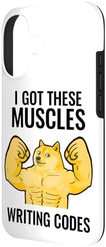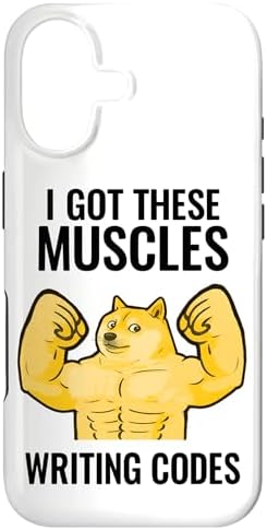 Funny programmer shiba inu saying I got these muscles writing codes. Perfect for programmers, coders, and software developers who enjoy a humorous take on debugging, coding, and tech life. A fun way to show passion for technology and computer science.