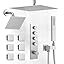 • Easy Maintenance: Built with a solid brass valve and ceramic thermostatic cartridge for long-lasting, leak-free performance and stable water flow. The 304 stainless steel panel is sleek. Flexible silicone nozzles wipe clean easily to prevent clogging.