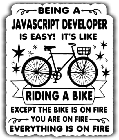 - [Hilarious Job-Specific Quote]: Features the funny quote “Being a Javascript Developer Is Easy, It's Like Riding A Bike Except The Bike Is On Fire...” with fiery design; perfect for Javascript Developer to add humor to laptops, water bottles, or phone cases with waterproof vinyl stickers with funny job quotes 2025.