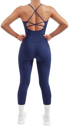 SUUKSESS Women 2 Piece Workout Sets Booty Leggings with Pockets Padded Tank Tops