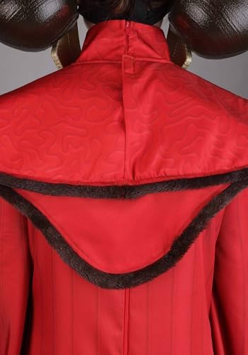 Transform into the regal and commanding leader of Naboo with the Women's Deluxe Star Wars Queen Amidala Costume. This meticulously crafted costume is perfect for a multitude of uses, transporting you into the universe of Star Wars, whether it's for a themed event, a costume party, or a movie marathon. Embody the elegance and authority of Padme Amidala, as you bring a bit of cinematic magic and royalty to your ensemble. Imagine stepping into a world where you oversee planetary matters with poise and brilliance. This costume showcases a full-length poly twill dress with a rich red hue that evokes both power and grace. The garment features a variety of intricate and thoughtful design details, including printed tuck stitches that provide a royal texture and aesthetic. The dress's dramatic long sleeves are lined with a jersey knit and finished with striking black faux fur trim on the cuffs and hemline. Experience the grandeur with padded and embroidered jewel decorations that adorn the bodice, which are sure to capture attention. Thanks to its back zipper, this dress offers ease of wear, allowing you to smoothly transition into character without the need for additional assistance. The addition of a foam-backed shawl complements the regal charm, featuring printed gold filigree and faux fur trim. Providing an extra touch of authentic regal flair, this ensemble includes a molded foam headpiece with metallic gold and red accents, complete with a plastic gem and an elastic band for secure wear. This headpiece encapsulates Queen Amidala's iconic and unmistakable style, setting you apart from other costume-goers. So drape yourself in its layers and channel the spirit of a true intergalactic leader. You'll be ready to tackle any adventure that comes your way while donning this remarkable representation of regal sophistication and fearless leadership at various events and occasions. - Dress - Chest Piece - Headpiece
