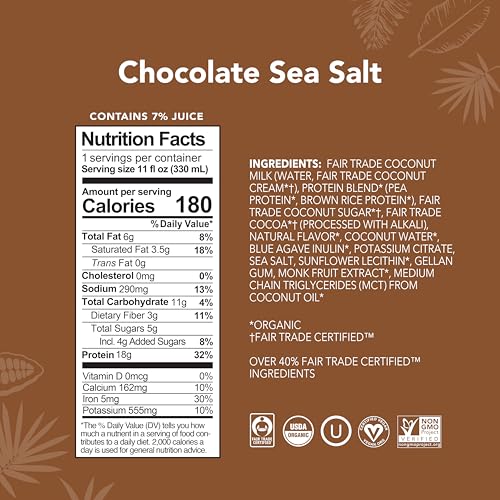 - Key Ingredients & Quality: Crafted with organic coconut milk for creamy texture and balanced flavor. Powered by 18g of organic plant-based protein from Fair Trade Certified pea and brown rice protein.