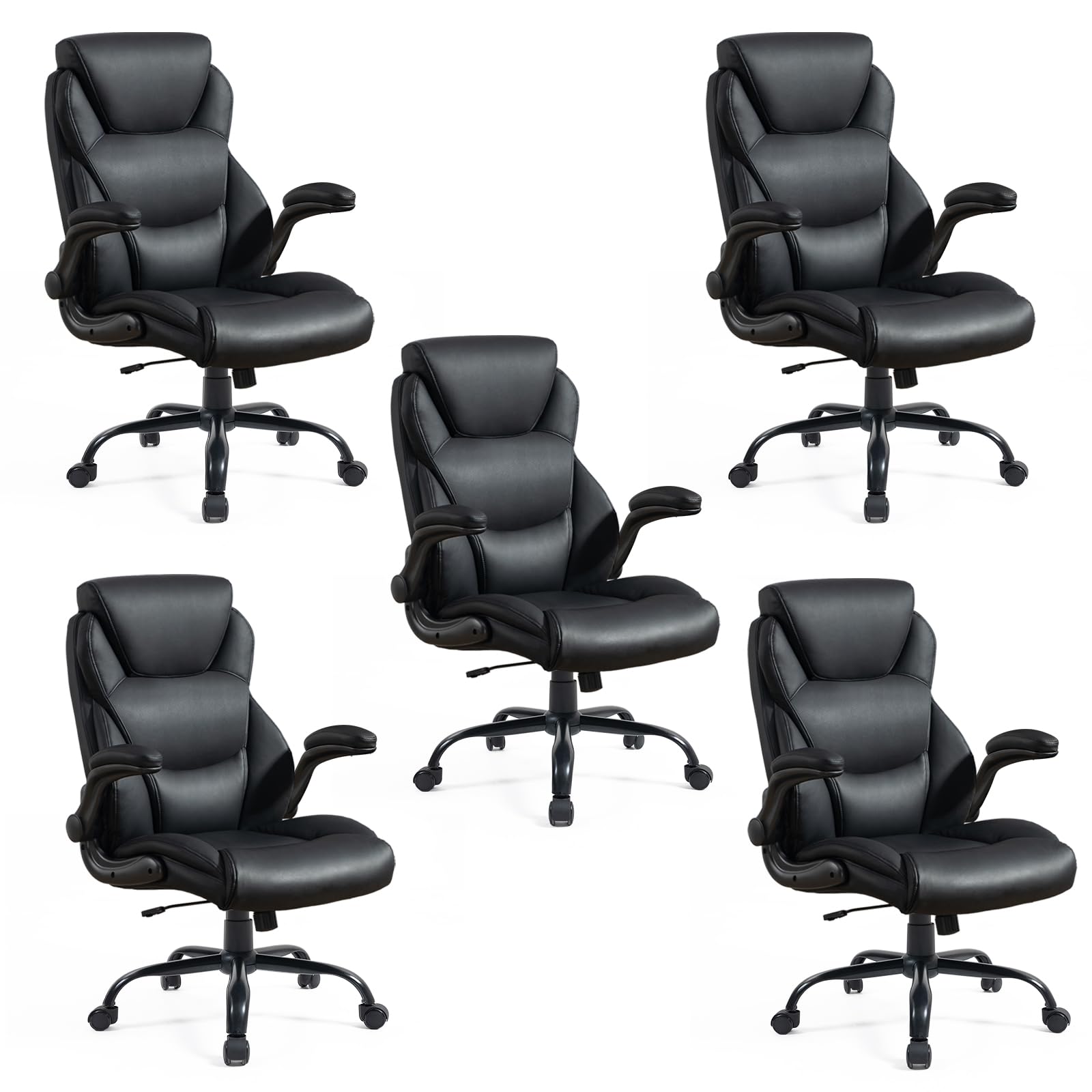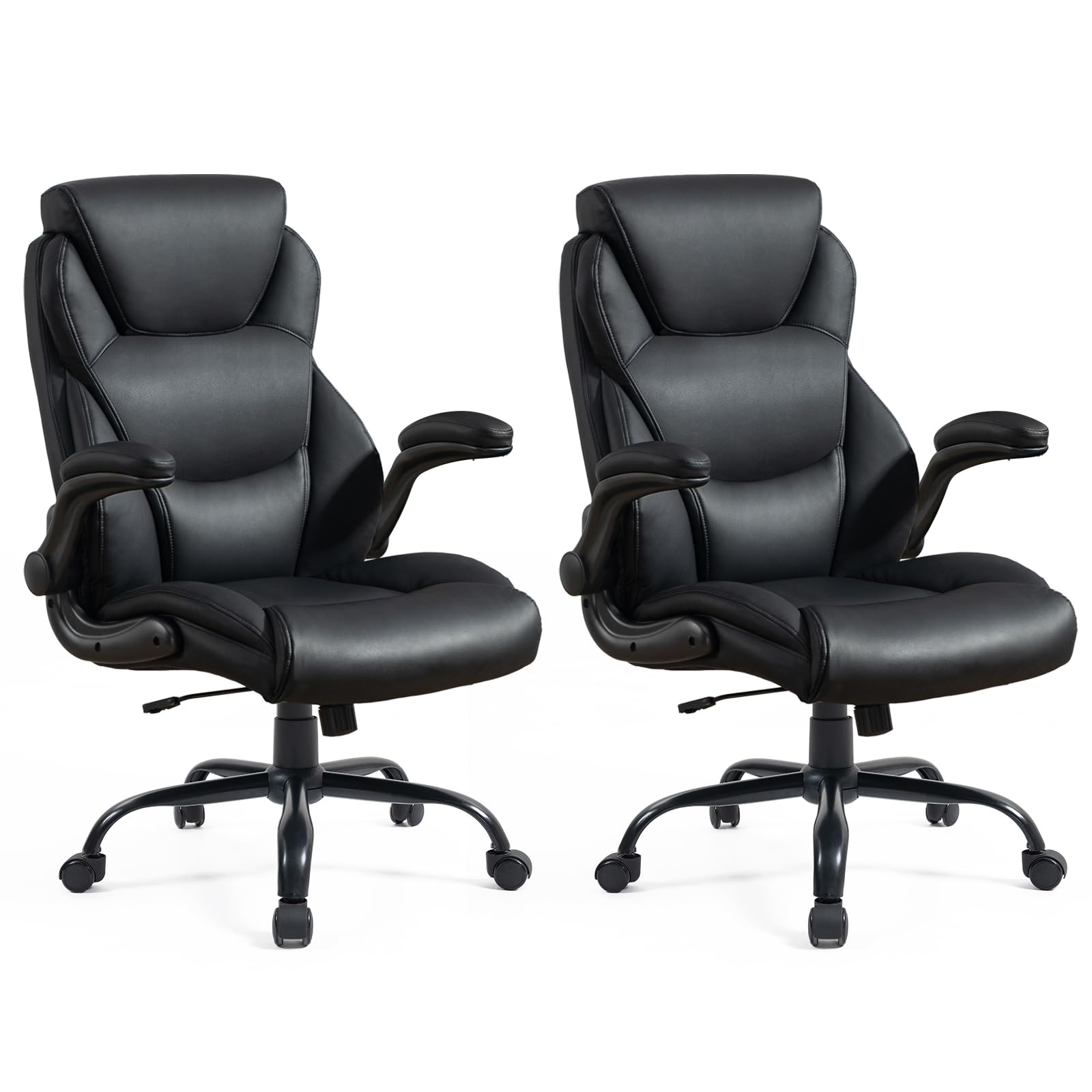 Brage Living 400LBS Big and Tall Office Chair, Leather Executive Desk Chair with Padded Flip-up Arms, Heavy Duty Swivel Rolling Computer Chair for Home Office, Black