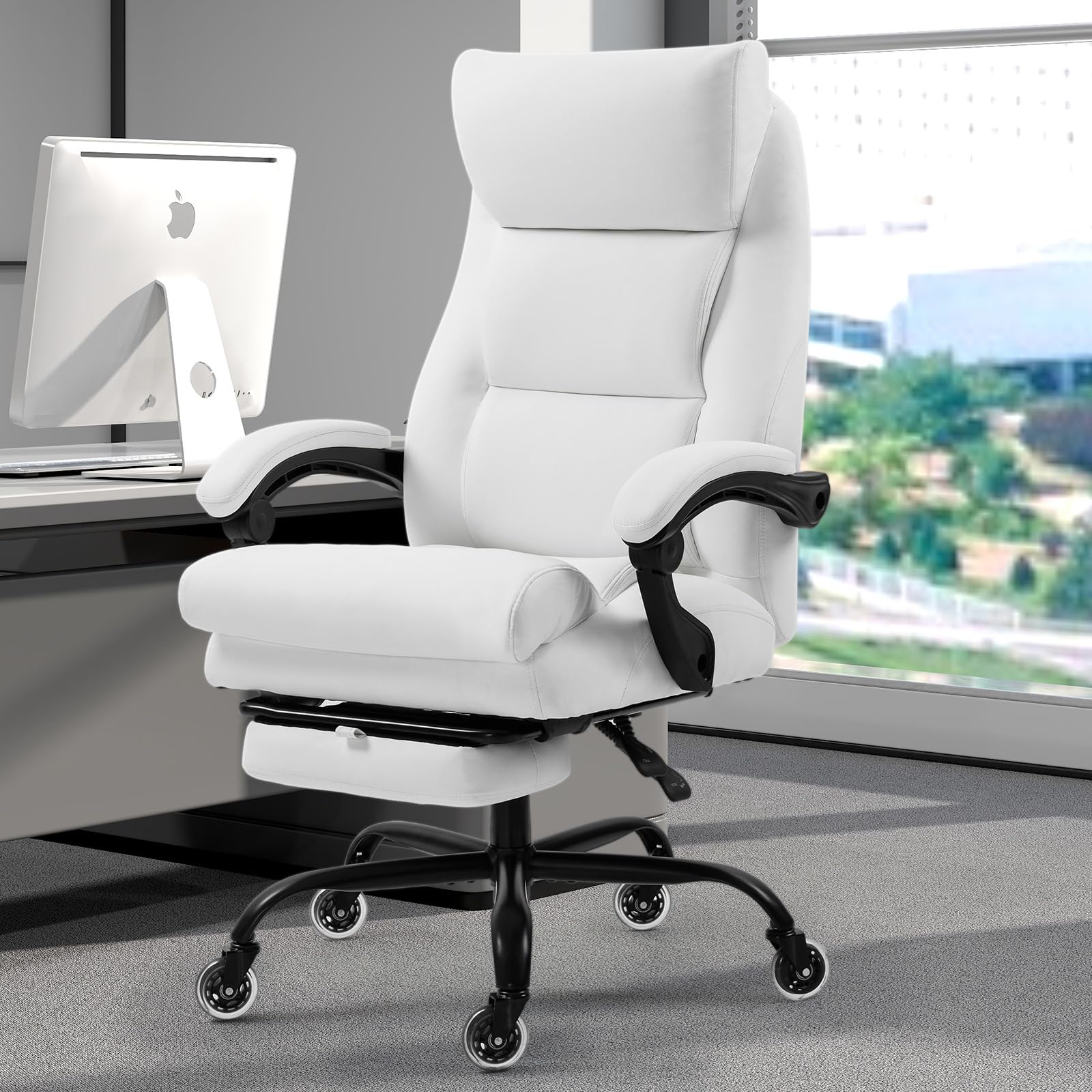 - 【Heavy-Duty Support – 400LBS Weight Capacity】Built for strength and durability, this executive office chair features a reinforced metal base and commercial-grade mechanism, tested over 100,000 times to ensure reliable performance. It easily supports up to 400 lbs, making it the perfect choice for big and tall users seeking lasting stability and safety.