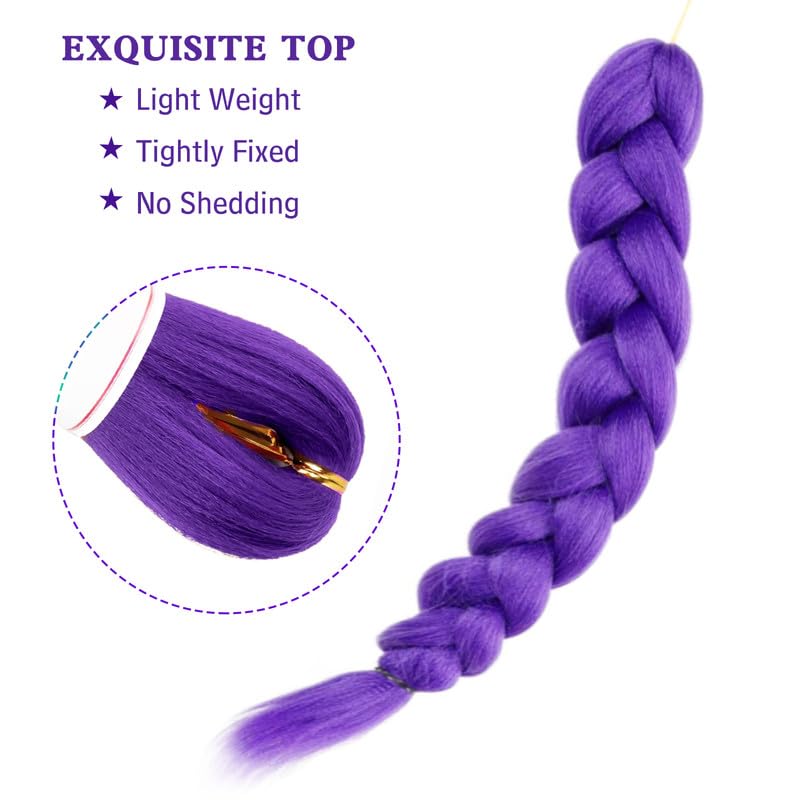 - Material:The purple Pre-stretched Braiding Hair Made with High Quality Low Temperature Flame-Retardant Synthetic Fiber,The Touch Feels Like a Real Hair, Very Supple and Looks Very Beautiful.