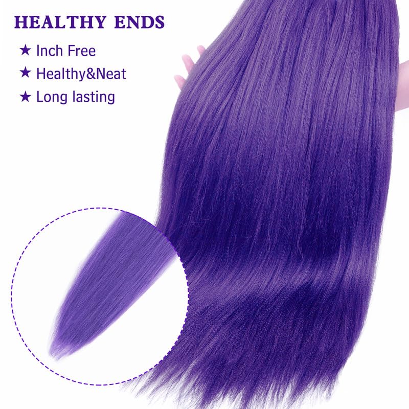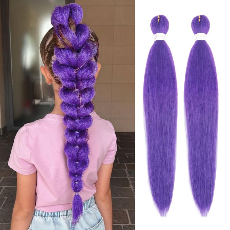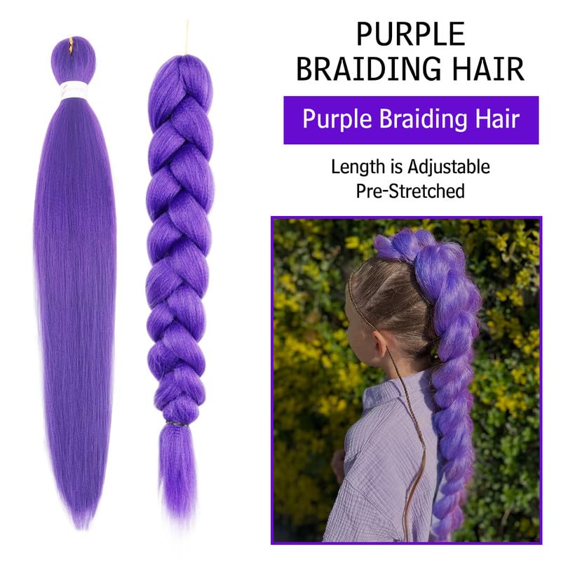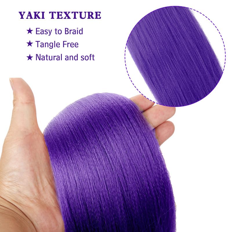 - Texture: Features a Yaki Texture That Looks Natural and Resists Tangling. This long purple pre-stretched braiding hair is Easy to Install and Works Perfectly for Twisting, Braiding, Locs, and More Styling Options.