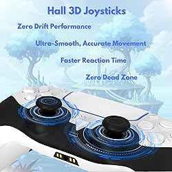 ⚙️ Enhanced Precision: Enjoy accurate targeting and smooth movement with advanced Hall 3D joysticks and a responsive 6-Axis gyroscope; ideal for fast paced gameplay requiring reliable control ⚙️ All Day Comfort: Ergonomic grip design provides a secure and natural hand position during extended gaming sessions; reduces strain and supports steady performance in competitive titles ⚙️ Universal Connectivity: Stable GioMay Pro wireless Bluetooth 5.3 connection works seamlessly with PS5, IOS, Android, PC and Steam; convenient for players who want a single controller for multiple gaming setups ⚙️Custom Control Options: Programmable dual back buttons allow quick access to essential commands to tailor your playstyle; ideal for competitive and casual gaming alike ⚙️ Immersive Game Feel: Dual motor vibration delivers dynamic tactile cues for more engaging in game moments; includes 3.5mm headset jack for direct audio connection with clear sound and low delay