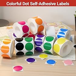 - Organize your workspace or classroom with this 2000-piece set of 0.9-inch round color coding dot labels. Perfect for office, home, or school use, these stickers make file classification, inventory tracking, and general labeling tasks quick and simple. The set includes 4 rolls, each with 500 labels, providing plenty of stickers for all your daily organizational needs. The multi-color design allows for easy visual categorization. Use them to differentiate folders, mark inventory, create color-coded charts, or highlight important documents. The self-adhesive backing ensures they stick firmly to a variety of surfaces, including paper, plastic, and cardboard, without peeling or leaving residue. Designed for convenience, these labels have a smooth surface for writing with pens, markers, or pencils, keeping your labeling clear and legible. The compact roll format allows easy dispensing, helping you apply stickers and efficiently while maintaining a tidy workspace. These color coding dot labels are for applications: organizing office files, managing classroom materials, tracking inventory, or labeling craft projects. Teachers, students, and office professionals will find these stickers invaluable for streamlining organization and boosting productivity.