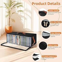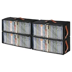 【Instant Visibility & Dust Protection】Say goodbye to messy stacks! This CD storage box has a clear front window and smooth zipper opening, so you can instantly see what’s inside and grab your discs—no digging required. Stack it, stash it on a shelf, or slide it into a cabinet—its dustproof, fully enclosed design keeps your collection clean, scratch-free, and looking brand new. 【Large Capacity Storage】Each CD holder measures 15.7" x 6.1" x 5.3". This 4-pack set holds up to 148 standard-size CD cases, making it perfect for organizing your CDs, DVDs, or Blu-rays. Stackable design fits perfectly on shelves, in cabinets, or media rooms. 【Oxford Fabric & PP Board】Made with high-quality Oxford fabric and reinforced with thick PP support panels, this CD case keeps its shape even when empty. The sturdy, reinforced design makes stacking more stable, and it fits easily on shelves or inside cabinets to help you maximize space and keep your area neat and organized. 【Multi-Directional Handles & Label Window】This CD storage box features sturdy handles on the top and both sides, making it easy to carry. Reinforced stitching keeps the handles secure even when fully loaded. It also includes a label window so you can insert a tag, making it quick and easy to identify and organize your CDs. 【Multi-Purpose Storage】More than just CDs! This versatile storage box can also hold towels, toys, office supplies, or seasonal clothing. Perfect for any space—living room, bedroom, office, or media room—helping you keep everything neat and organized. Ideal for everyday tidying, household storage, moving, or packing for events.