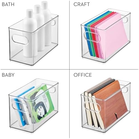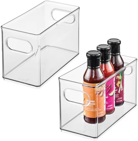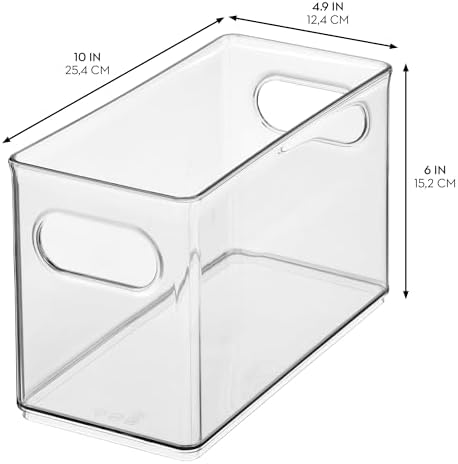 - SPACE-SAVING DESIGN - The iDesign Clear Plastic Stackable Storage Bin fits narrow spaces like fridge shelves, pantry racks, or under sinks, and its slim profile is ideal for organizing snacks, bottles, condiments, and other small food items; Set of 2