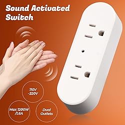 Light Control: No more fumbling for switches at night-control your lights and appliances with claps. The light control for bedroom turns devices on with 2 claps and off with 3 claps, making your routine easier and safer Dual Outlets for More Convenience: This lights switch includes 2 sockets, letting you control 2 devices at once. Perfect for bedside lamps, fans, or decorative lights. The light on lights off design simplifies everyday use Plug & Play Smart Setup: Simply plug into any outlet and enjoy instant control-no WiFi or apps needed. The light control responds to claps or taps within 3 meters, great for seniors, kids, or anyone who wants simple automation Compact & Reliable Performance: Sized about 4.53 x 1.38 x 1.18 inches, rated for 110V-220V, max 1200W/1.6A. Use for small appliances only-ideal as a light switch for lamps and fans. Please avoid heavy equipment like AC units Wide Application & Safer Living: From bedrooms and living rooms to offices, this light adds comfort and accessibility. A thoughtful gift for elderly parents, pregnant women, or people with mobility challenges who need easy lighting control