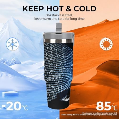 YHNNH Programmer Programming Code Water Bottle 30 Oz Fits Car Cup Holder,Large Capacity Car Cups,Stainless Steel Double Wall Sport Bottle for Travel Sports Gym