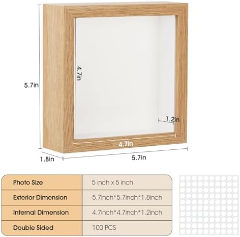 Shadow Box Frame - Frame Display Case, Square Display Case for Wall Mountable Display Box for Medals, Photos, Dried Flowers (5"x5")