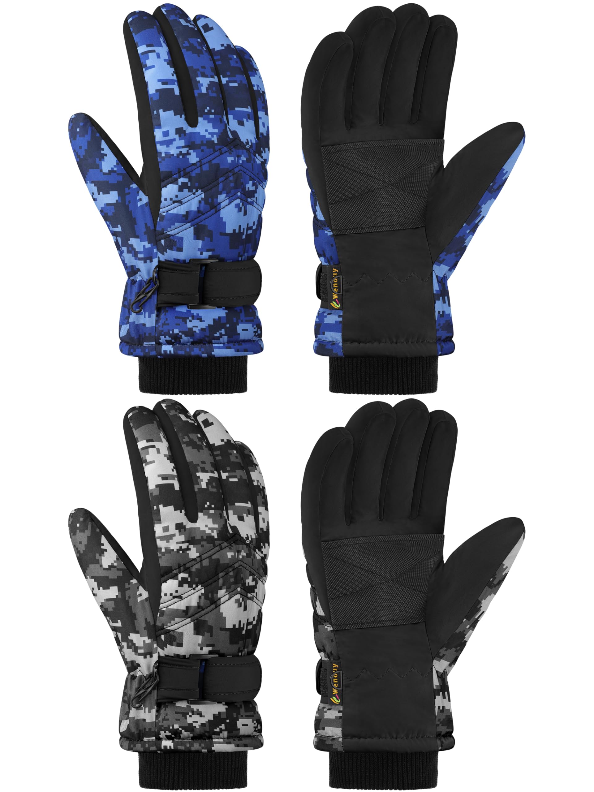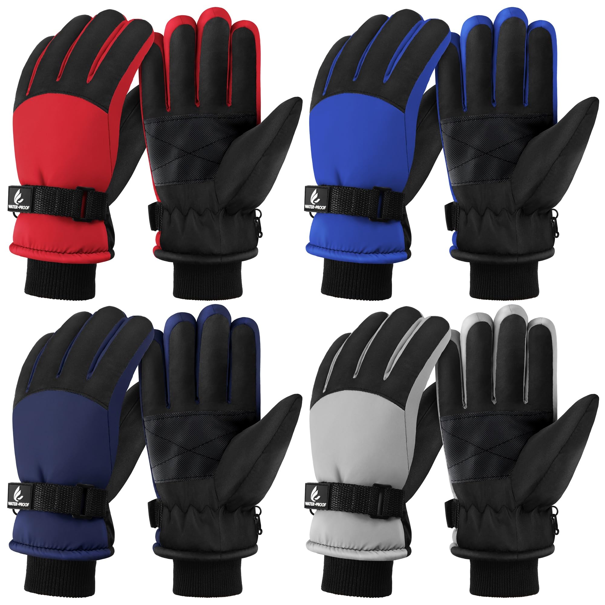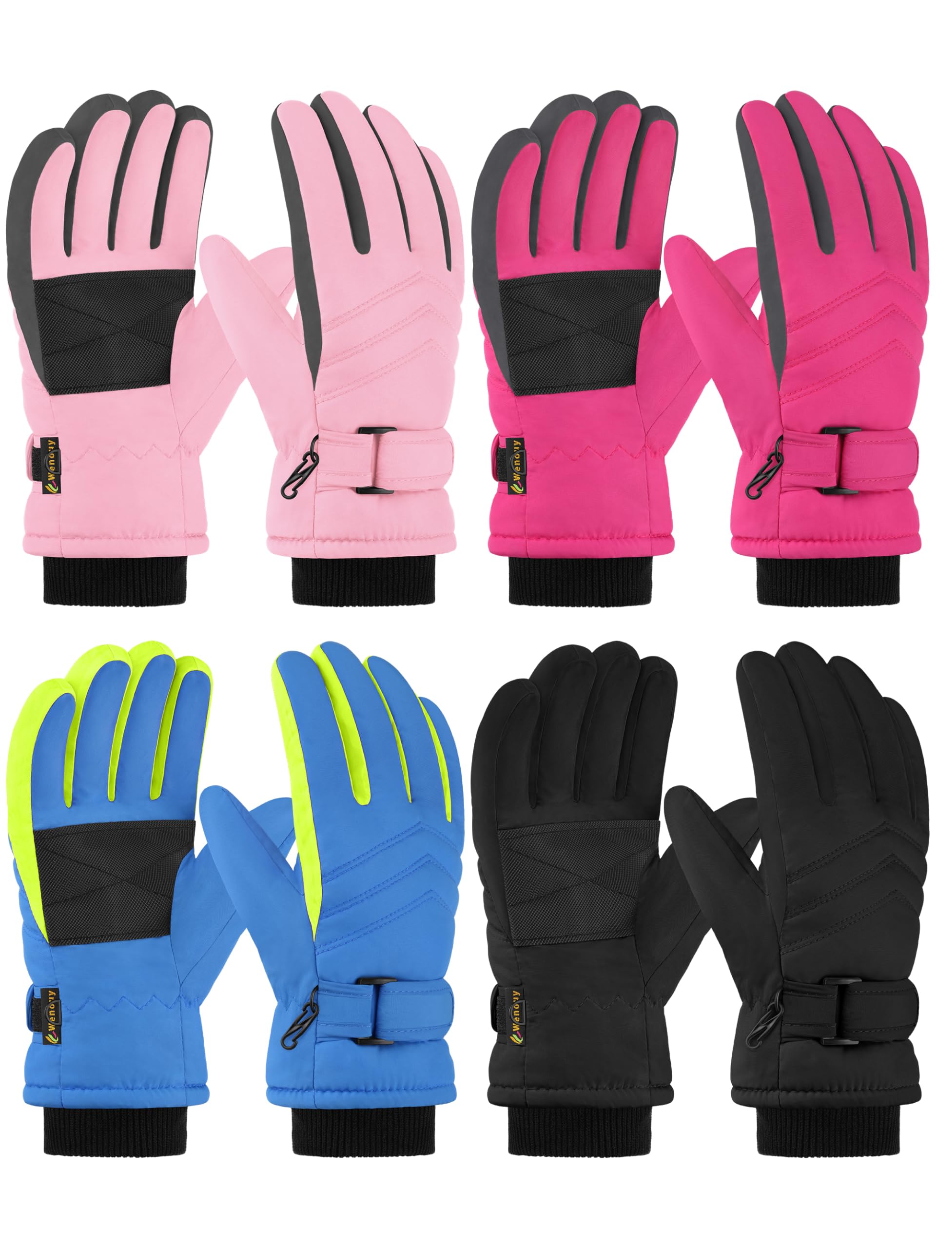 4 Pairs Kids Winter Gloves Waterproof Snow Ski Gloves for Cold Weather Adjustable Warm Accessories for Boys Girls