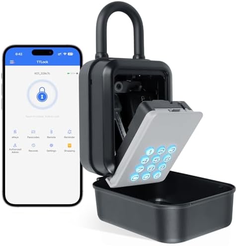 - ✔️[Two Convenient Unlock Methods]: Unlock your key lock box through Bluetooth in the free TTLock app or by entering a PIN directly on the keypad. Whether you prefer smartphone control or a simple code, both options ensure quick and secure entry. (No built-in WiFi capability, WiFi control requires an optional gateway)