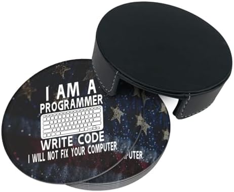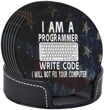 Coasters I Am A Programmer I Write Code I Will Not Fix Your Computer Drink for Weddings Bars Homes Offices 6 Pcs Leather with Holder Perfect Decoration Family Table Protection