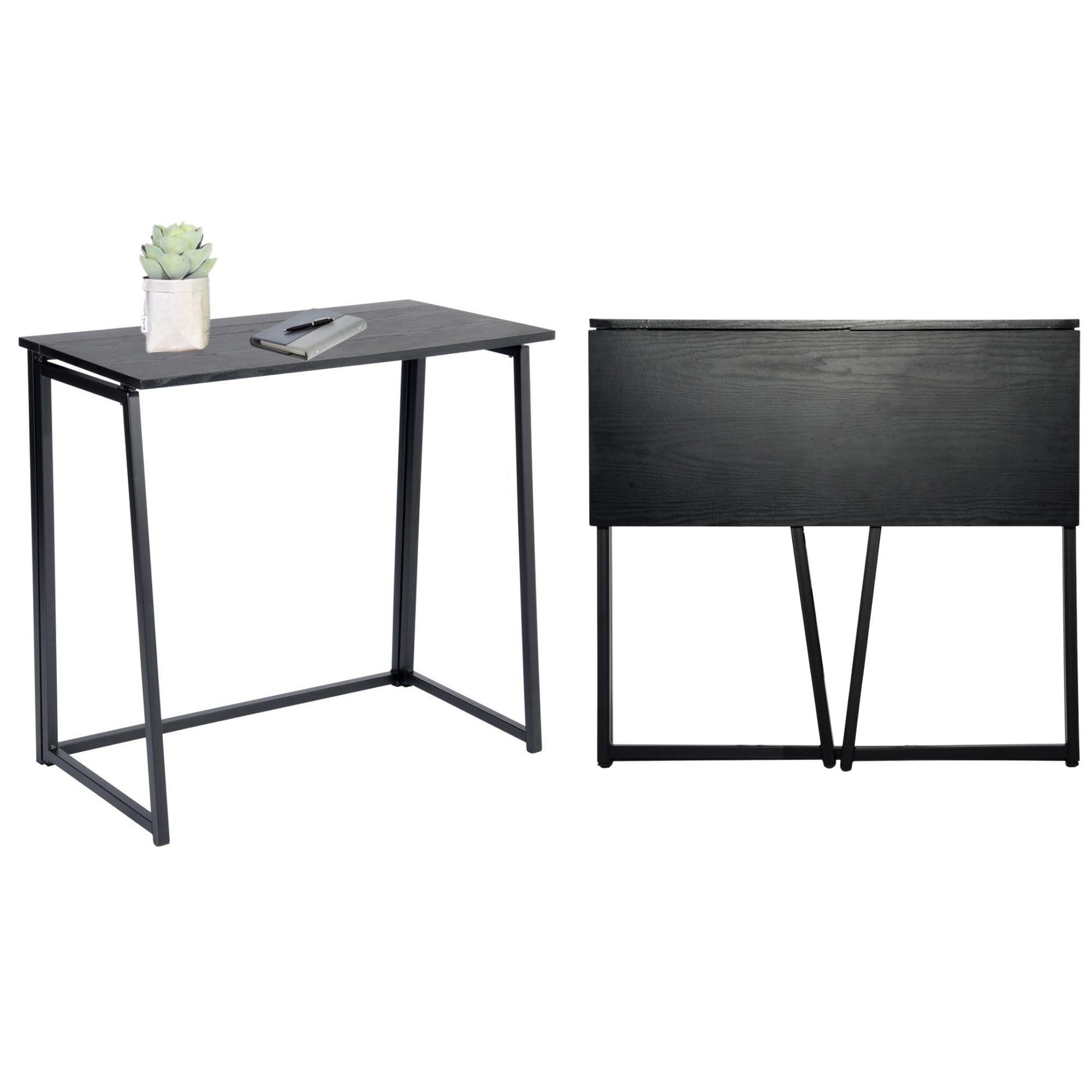 Homy Casa Folding Dining Table, 55.1“ Length Multi-Function Folding Table with Hook, Rustic Brown Wood Top, Black Steel Frame, Space-Saving Design for Single Apartment Brown