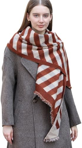 Wander Agio Diagonal Checkered Scarf Winter Shawl Thick Cashmere-Like Soft Wrap Warm Scarves Womens Plaid Shawls
