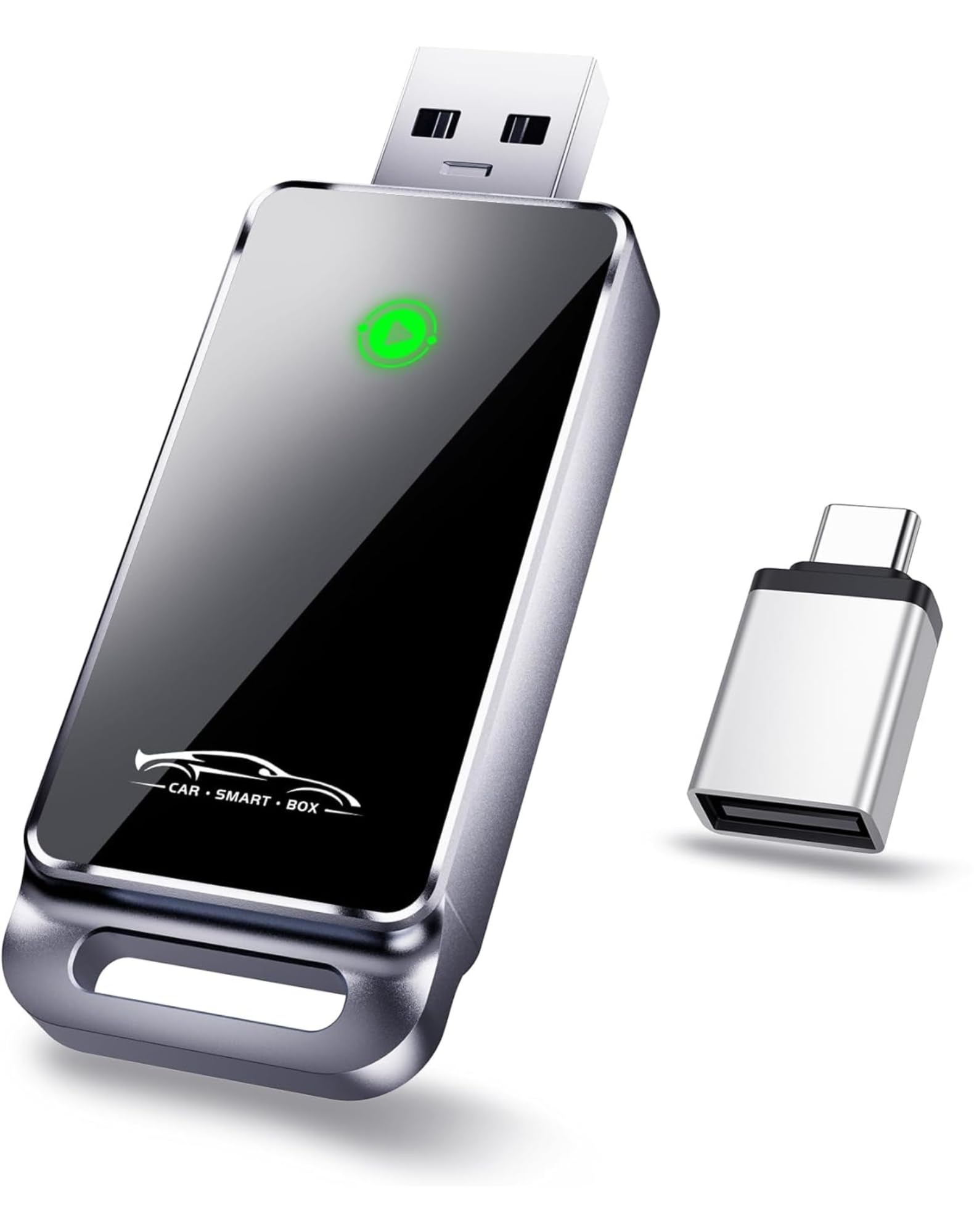 - Compact And Durable: This CarPlay adapter uses a mini USB design, which is 50% smaller in size, eliminating tangled cables and saying goodbye to clutter. Paired with a stylish metal shell design, it not only enhances the space's fashion sense, but also improves the heat dissipation of the metal shell, protecting the car's USB port from overheating