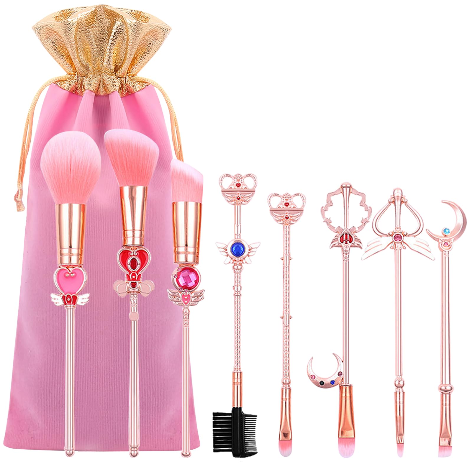 Anime Theme Cosmetic Brush Set (6PCS) with Bracelet – Perfect for Young Females