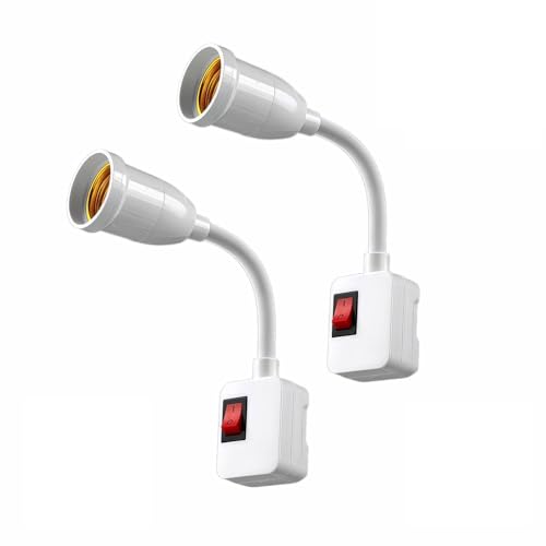 2-Pack E26/E27 Socket Extension with On/Off Switch, 360° Fully Flexible Neck Plug-in Light Socket Adapter, No Wiring Needed,Flame Retardant PC,for Bedroom,Night Light,Garage,Closet,and Bulb Camera