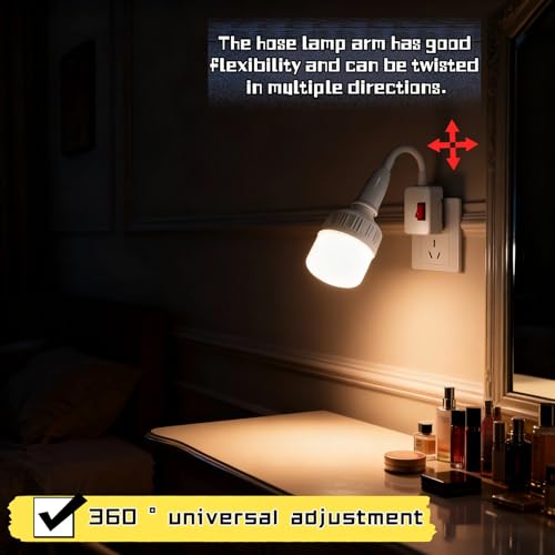 - 💡360° Flexible Rotation & Stable Pivot for Perfect Lighting Angles Equipped with an 11cm fully flexible neck made of reinforced metal core, this light socket rotates 360° and pivots to any angle—easily aim light where you need it most. The sturdy design stays firmly in place even with heavier bulbs (up to 7oz), eliminating wobbling for consistent, targeted illumination. Ideal for tight spaces like closets, under cabinets, or bedside reading nooks.