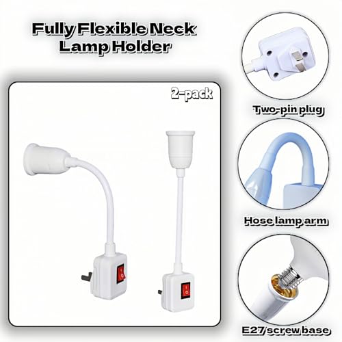 Transform any standard outlet into a versatile lighting solution with this 2-pack of E26/E27 socket extensions. Featuring an 11cm Fully Flexible Neck design, these adapters offer 360-degree adjustability to direct light exactly where you need it. Each unit includes a convenient on/off switch and requires no complex wiring - simply plug in and attach your preferred bulb. The durable construction supports bulbs up to 60W (standard) or 30W (halogen), with a recommended maximum bulb weight of 200g/7oz. Perfect for creating task lighting in bedrooms, garages, closets, or reading nooks. The sturdy copper internal connections and flame-retardant PC housing ensure reliable performance, while the adjustable neck maintains its position whether straight or bent. These socket adapters work with standard E26/E27 bulbs and can be used for LED lights, night lights, reading lamps, or bulb cameras. Compatible with 100-220V power sources, they're an ideal solution for adding targeted lighting in space-constrained areas.