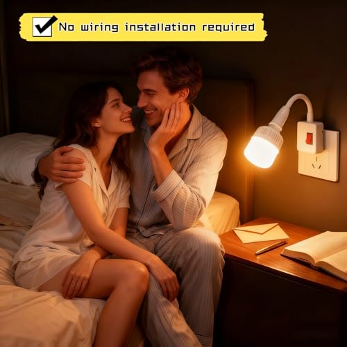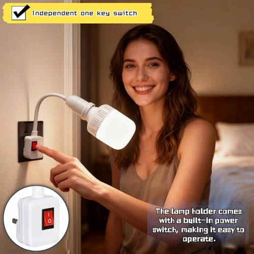 - 💡Tool-Free, Plug-and-Play Installation—No Wiring Needed Skip the hassle of complex setups. Simply plug the socket into any wall outlet or power strip, insert your E26/E27 bulb, and flip the switch to light up instantly. Perfect for renters, DIYers, or anyone needing quick, temporary lighting solutions without drilling or electrical work.