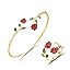 ONLYJUMP 2pcs Red Rose Jewelry Set For Women Dainty Pink Roses Flower Bracelet Ring Gold Plated Collar Gold Red Accessories Fashion Wedding Valentine's Day Jewelry