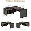 - Large L-shaped Executive Desk - This l shape executive desk offers an expansive workspace, perfectly accommodating various items, from bulky monitors and laptops to books, documents, and personal items - you can spread out all your essentials without feeling cramped or crowded. Dimensions: 70.86"L x 61.02"W x 29.92"H