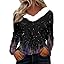 ZEFOTIM Christmas Shirts Long Sleeve V Neck Womens Christmas Tops Cute Santa Tshirts