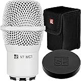 sE Electronics V7 MC1 Wireless Microphone Capsule - Compatible with Sennheiser Wireless Transmitters - Professional Dynamic Microphone for Singing, Speech & Music Studio Recording (White w MP03 Pouch)