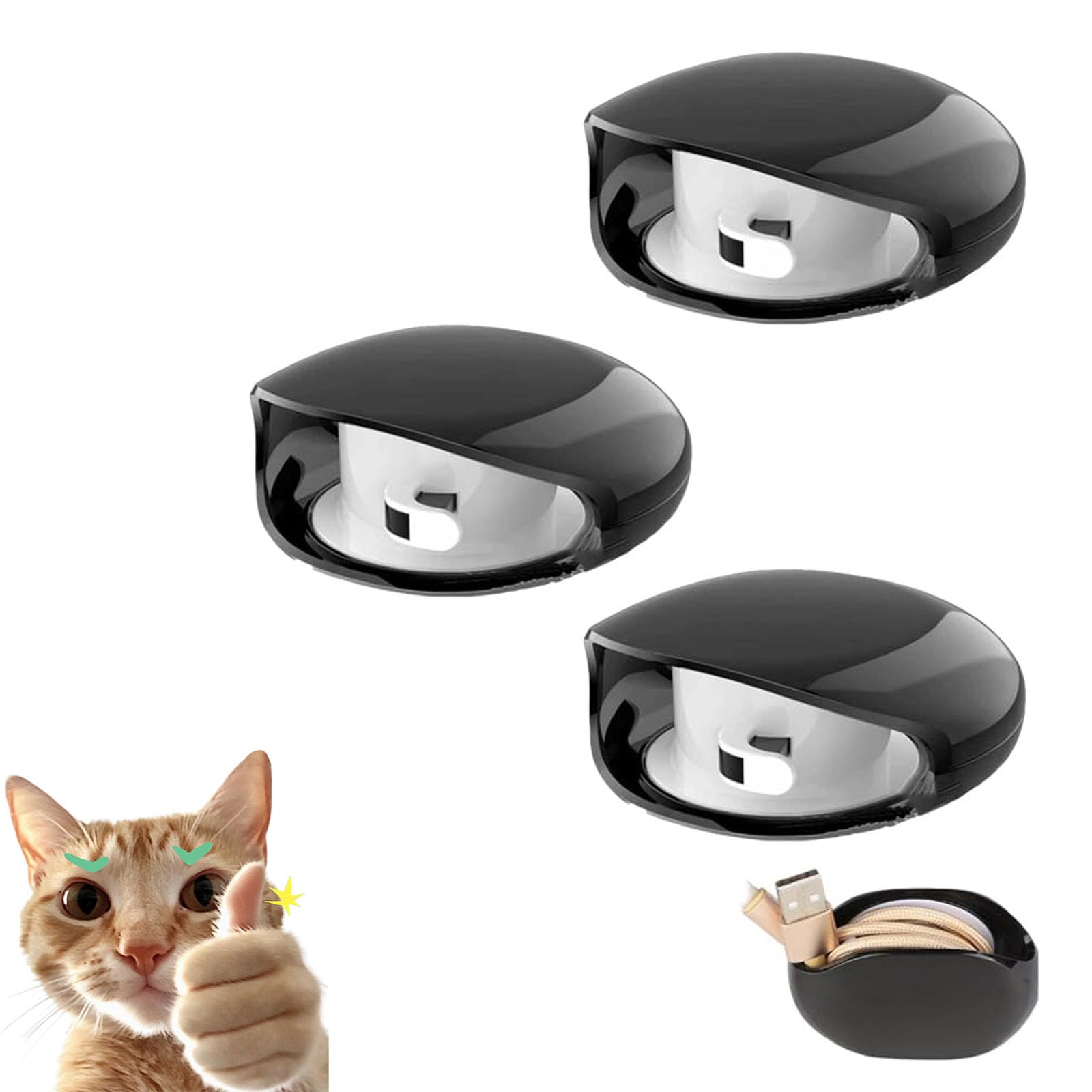 Automatic Cord Reel, Retractable Hidden Cable Reel, for USB Cable Headset Cord Charger Cable for Travel and Organization (3PCS)