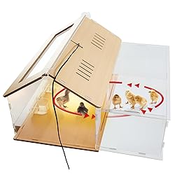 CHICK HEATER LAMP: Adjust the brightness of the 50W bulb with a knob, and turn on the light to quickly preheat the breeding box to a high temperature of 140 ° F. It is as warm as the sunshine in summer. Improve the survival rate of hatched chicks and small animals, keeping them warm, comfortable, and growing rapidly in their mother's arms. 40-50 newly hatched hairless chicks and ducklings. Expand the area to increase the capacity for brooding and hatching.(Please hold the expansion box while moving) TEMPERATURE/HUMIDITY DISPLAY:Accurate digital screens provide temperature and humidity changes, allowing pets to adjust to a comfortable living temperature. (Gifts:chicken feeder x2, chicken water dispenser x1, heating lamp x2) TRANSPARENT DESIGN: Wide field of view will meet the needs of family incubation, allowing children and laboratories to understand the entire incubation process and cultivate their curiosity. MATERIAL: High temperature resistant, moisture-proof/waterproof, lightweight, easy to disassemble/clean, odorless, (Convenient rubber ring installation Suitable for small animal activity and weight-bearing)