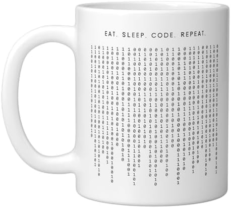 Eat Sleep Code Repeat - Funny Minimalist Programmer Ceramic Mug, White