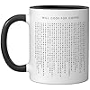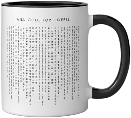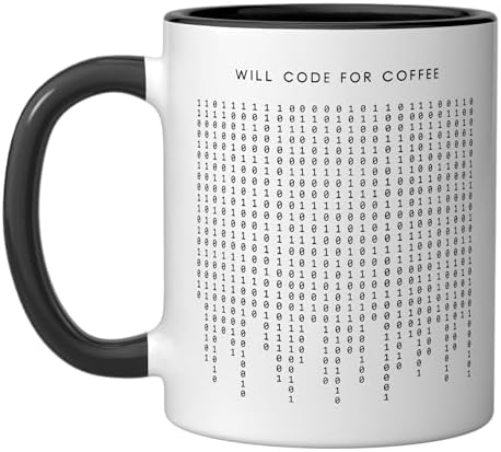 Will Code For Coffee - Funny Minimalist Programmer Ceramic Mug, Black/White