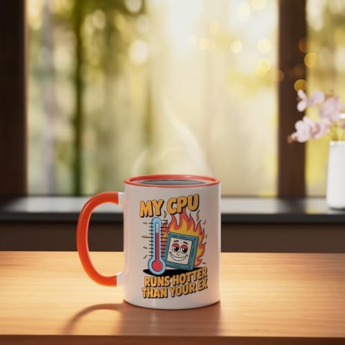 Hot Cpu Pc Gamer Programming Computer Builder Tech Life Ceramic Mug, Orange/White