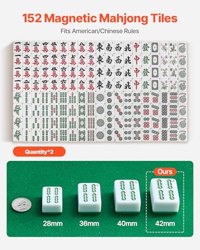• American/Chinese Mahjong Set: This mahjong table comes with 152 high-quality tiles measuring 1.65 x 1.22 x 0.85 in. Each tile includes Arabic numbers or letters, making them easy to recognize even for players unfamiliar with Chinese