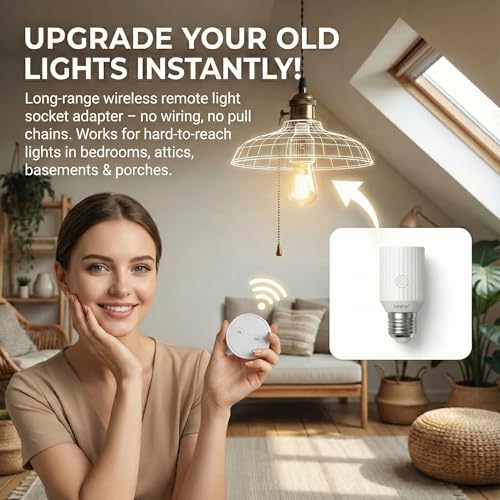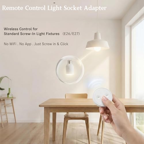 - ✦ Instant Setup Pre-Paired System – Socket and remote arrive pre-synced. Simply screw into any E26/E27 fixture and start controlling your light immediately. No app downloads, no WiFi setup, zero pairing required.