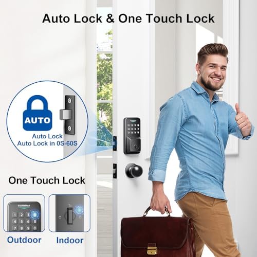 - [Auto-Lock and One-Touch Lock] The deadbolt lock set features an Auto-Lock and One-Touch Lock function. It can be set to auto-lock after 0-60 seconds and locked instantly with a single press. While providing you and family with security, deadbolt also offer you unparalleled convenience.