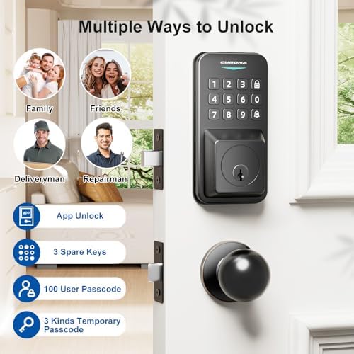 - [4-in-1 Unlock Door] The CUBONA Smart Deadbolt features versatile unlocking options: Bluetooth App Control, 100 user codes, 3 physical keys, and 3 types of temporary codes: Custom Code, Time-Limited Code, and One-Time Code. Ideal for homes, Airbnb rentals, apartments, offices, hotels and short-term rentals.