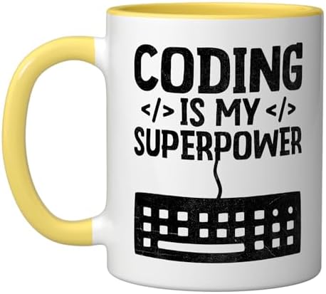 Coding Is My Superpower Computer Programming Programmer Ceramic Mug, Yellow/White