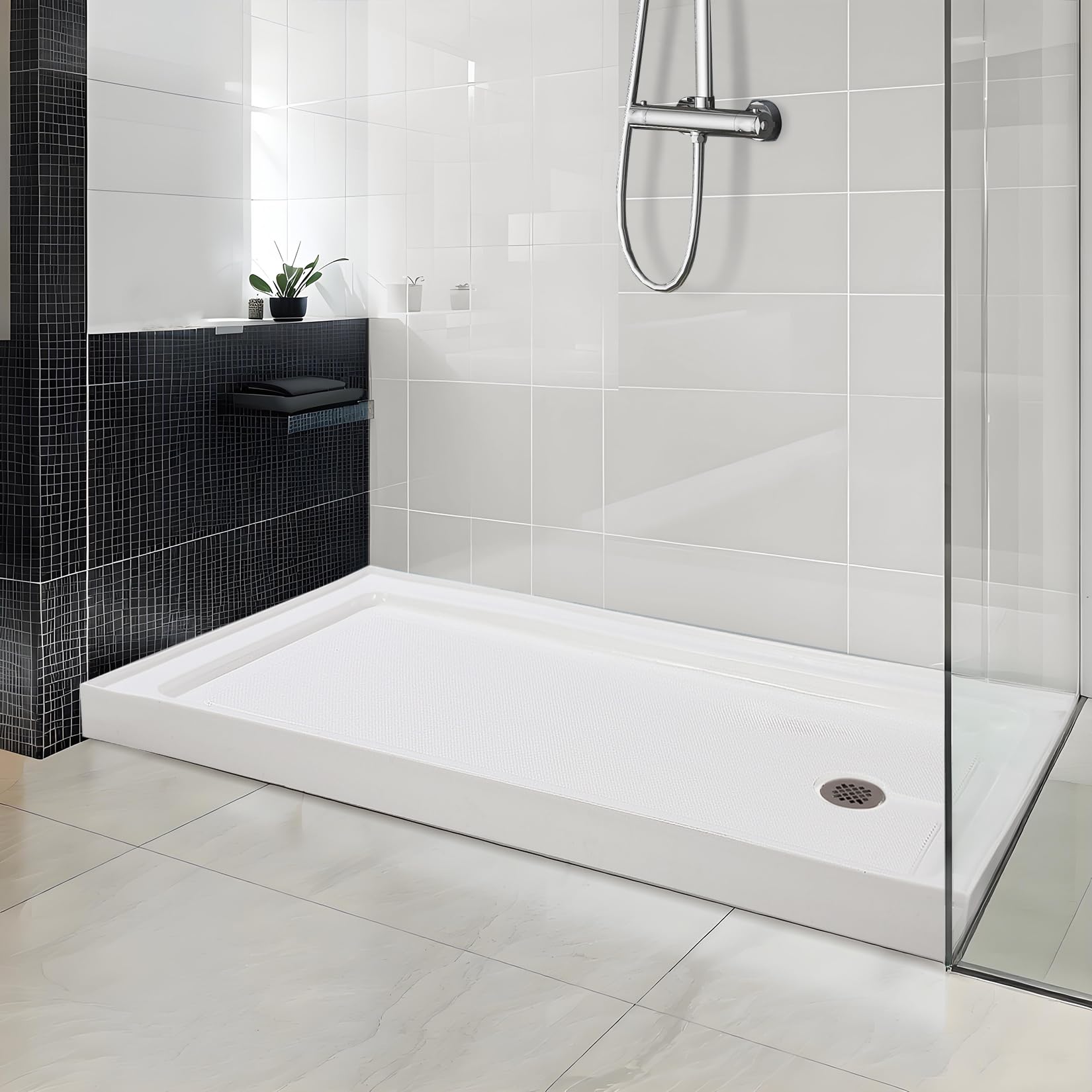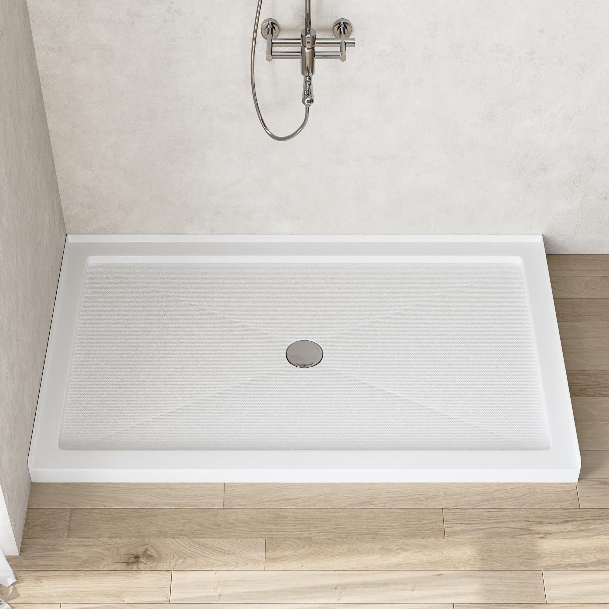 Garvee Shower Base 60'' L x 32'' W with Stainless Steel Drain, Shower Pan & Tray with Non-Slip Texture, Center Drain